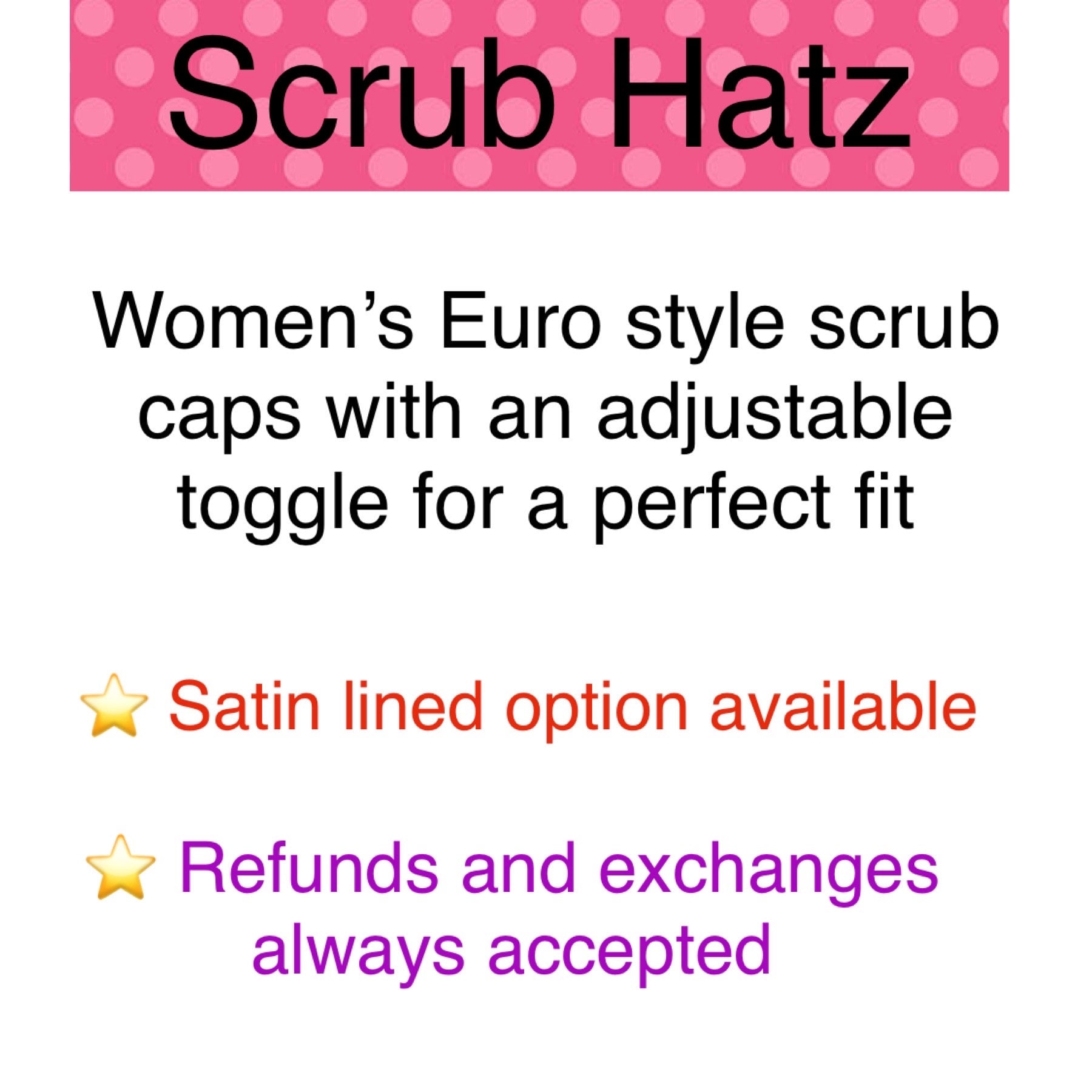 Women’s Euro style scrub hat with adjustable toggle for the best fit.