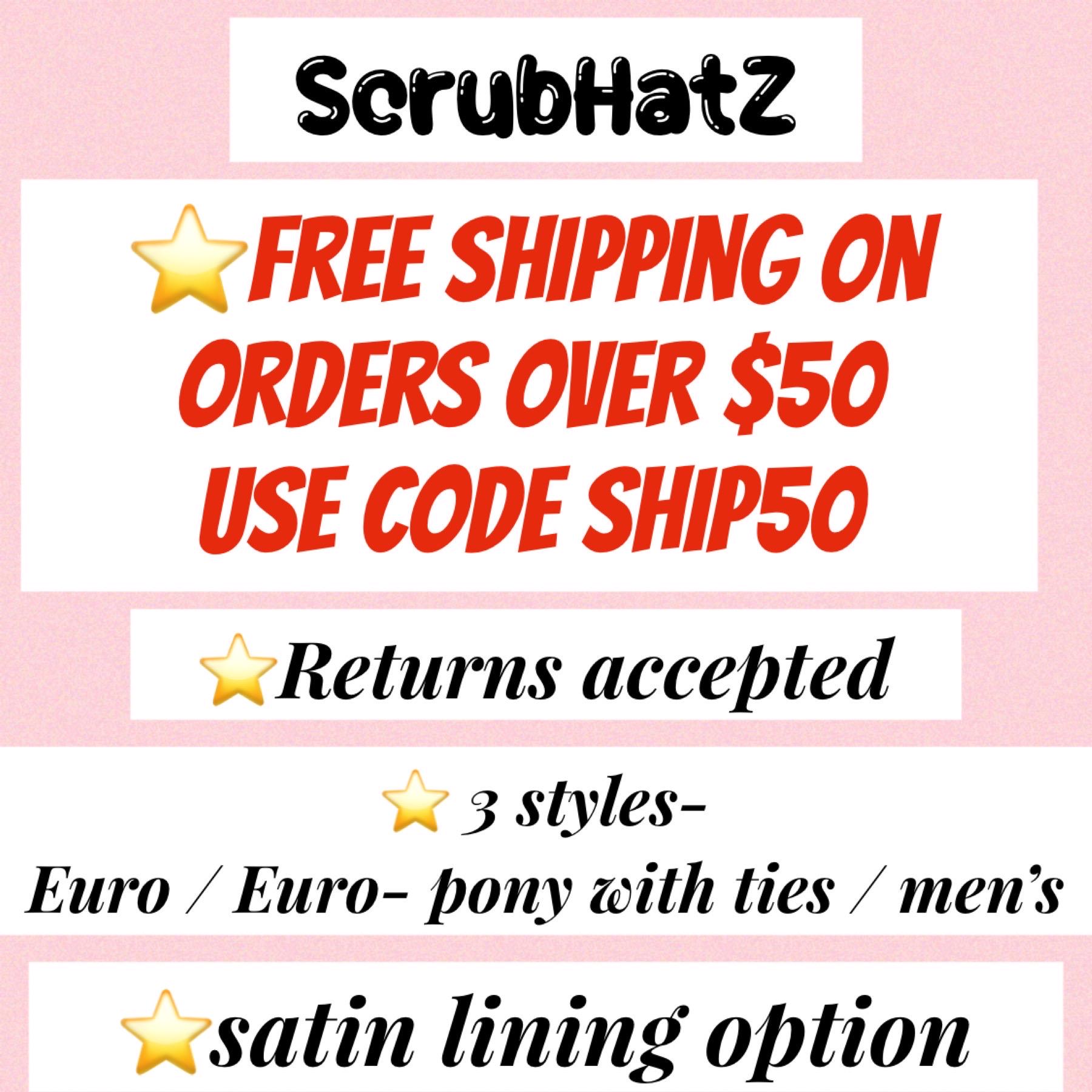 🔸Scrub hats / scrub caps for the medical professional. Nurse hair covering.
